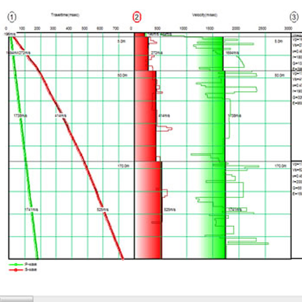Basados en la velocidad de propagación de las ondas de compresión (ondas P) y de corte (ondas S); y la densidad de los materiales este ensayo permite estimar los módulos dinámicos de deformación del terreno, tales como, Relación de Poisson, Módulo de Corte, Módulo de Young, Modulo Volumétrico Dinámico, entre otros.